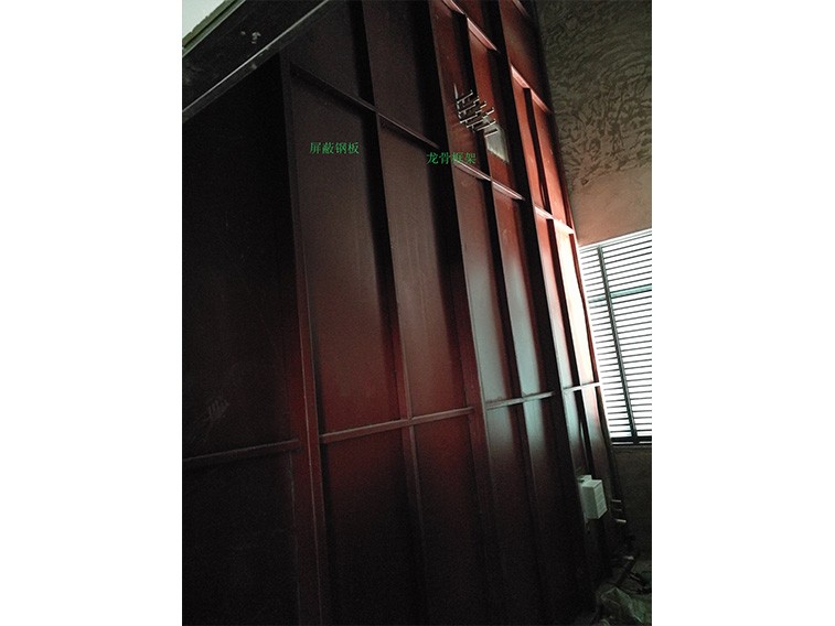 型鋼組成的龍門框架、冷軋或鍍鋅鋼板屏蔽殼體、屏蔽門、通風波導窗、電源(信號)濾波器、室內電氣及裝飾。